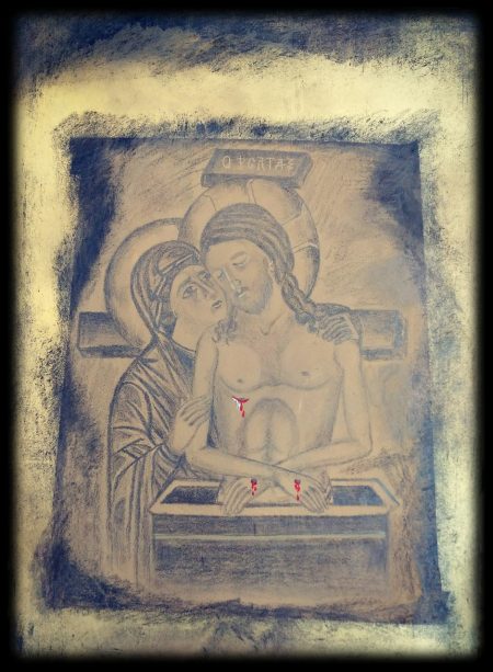 Η τεχνική που ακολουθεί έχει ως εξής : Αφού επιλέξει το κατάλληλο ξύλο, προχωρά στην επεξεργασία του, ώστε να μπορέσει να δεχτεί το χρώμα –Κατά κύριο λόγο χρησιμοποιείται η τεχνική της αυγοτέμπερας – μετά ακολουθεί η σχεδίαση της εικόνας με καρμπόν πάνω στο ξύλο, το επιχρύσωμα της και ο χρωματισμός των φιγούρων. Έπειτα γίνονται τα πρώτα γραψίματα, ο φωτισμός τα χαρακτηριστικά των προσώπων, τυχόν διορθώσεις και τέλος το βερνίκωμα της εικόνας.